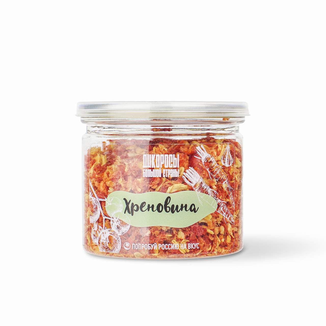 Состав: сублимированные помидоры, хрен, чеснок, соль, сахар.