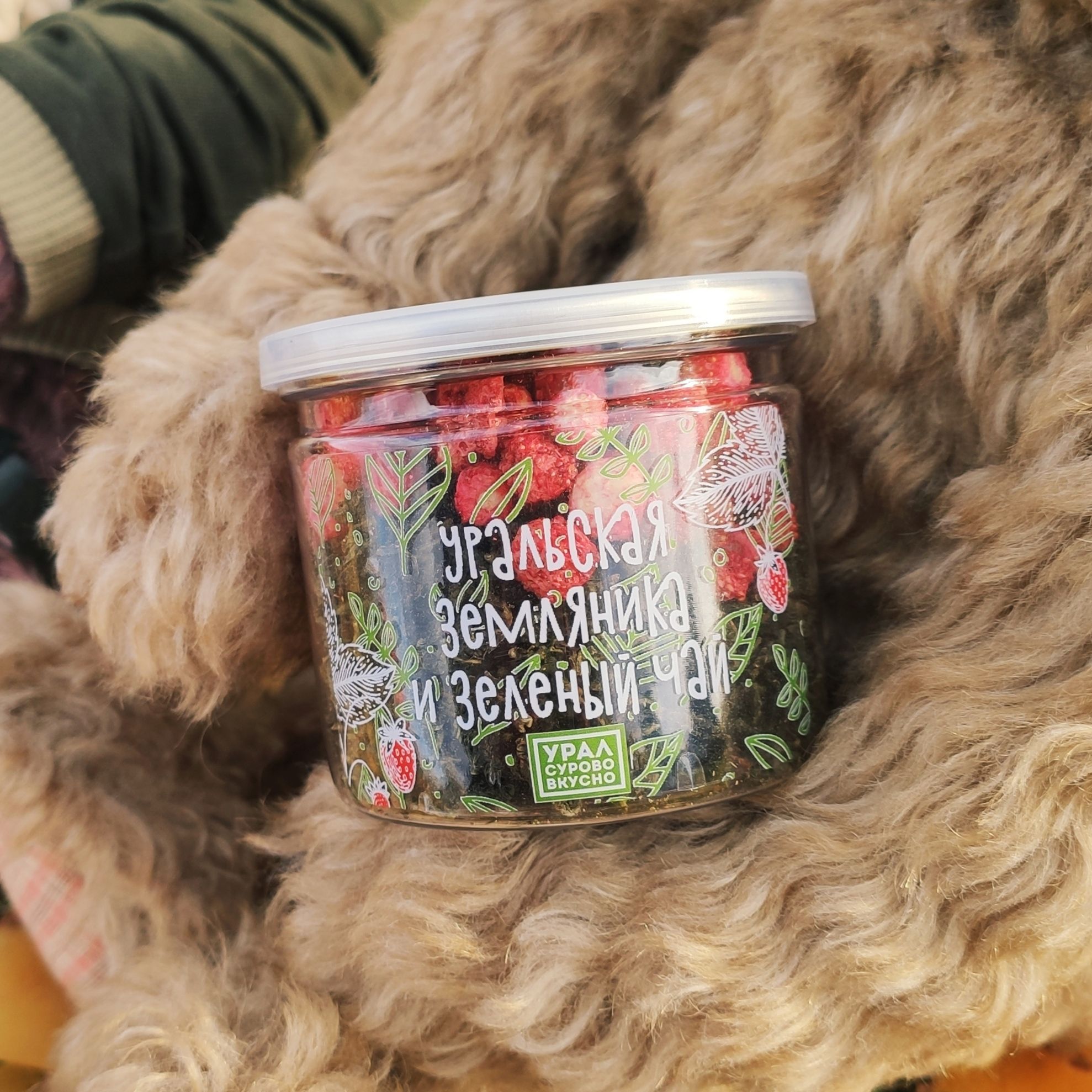 Зеленый чай с сублимированной земляникой 25гр ПЭТ банка УСВ